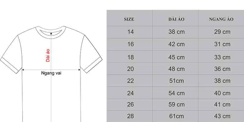 - Số đo vòng ngực quyết định độ rộng của áo, giúp bé thoải mái khi cử động tay và vai.